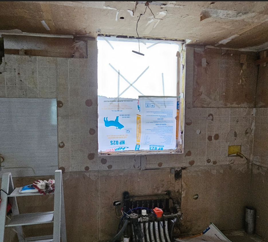 앞쪽에 라운드가 있는데 기존에 이미 메꿔져 있었습니다. 그래서 일자로 시공한 후에 하부에 조적을 쌓고 우레탄 폼을 채워 드렸습니다.