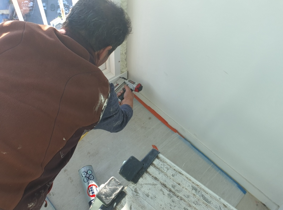 네. 이렇게 꼼꼼하게 충진을 하고 하부는 나머지는 몰딩 작업으로 마무리를 합니다.