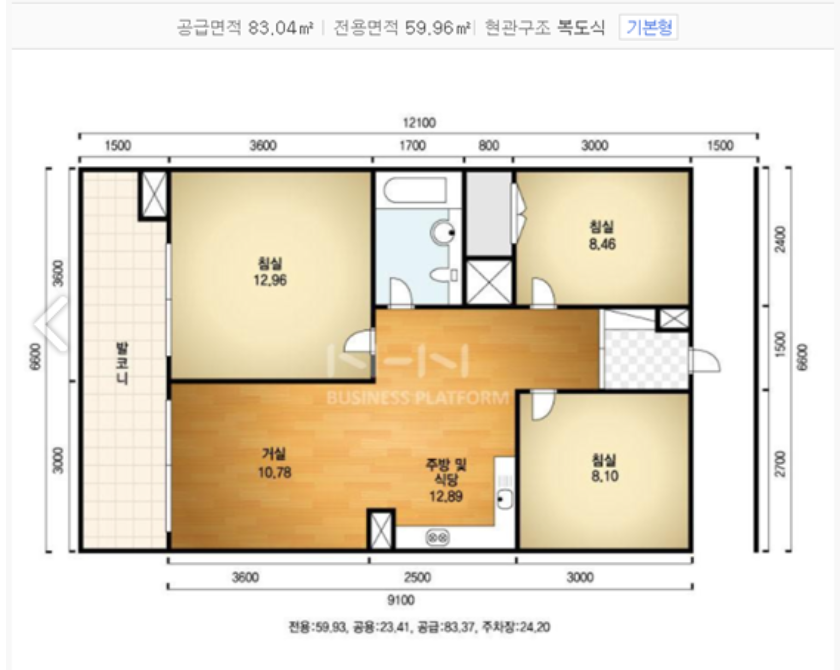 그런데 벽지(도배), 바닥(마루, 장판)은 어떨까요? 해당 자재는 전용 면적에 따라 나오기 때문에 거의 비슷합니다.