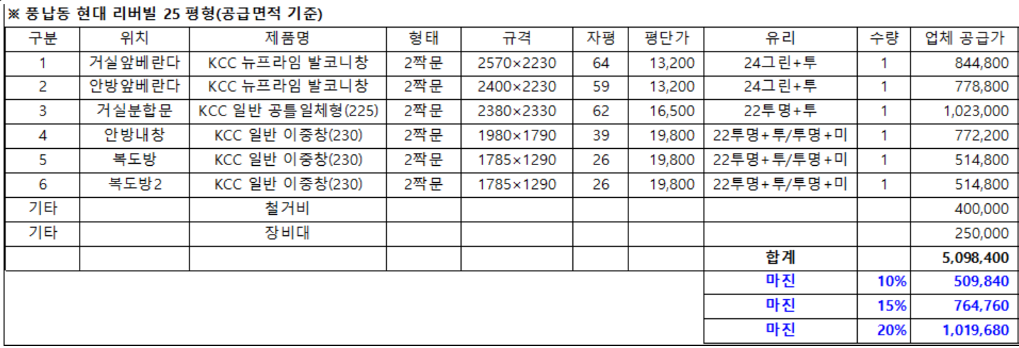 오늘은 저번에 알려 드렸던 창호 원가 공개에 이어 아파트 평형대별 창호 가격에 대해서 알려 드리겠습니다.