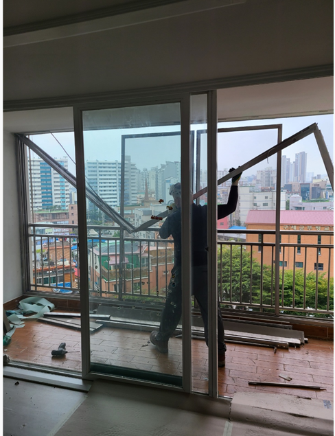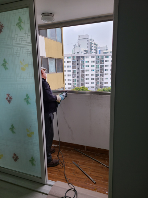 하이새시(pvc새시) 다 잘라내고 뜯어야 되는데 잘 뜯기지도 않고 좀 힘들죠.