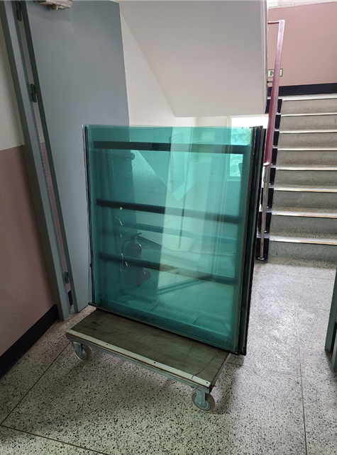 근데 이 부분은 사진은 못 찍었네요.... 그리고 여기서 유리를 반으로 쪼개서 유리를 가지고 나갈 수 있게 분리를 하죠.