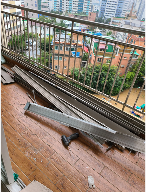 그럼 이제 새시의 잔해들을 한 군데 모아서 들고나가면 됩니다.