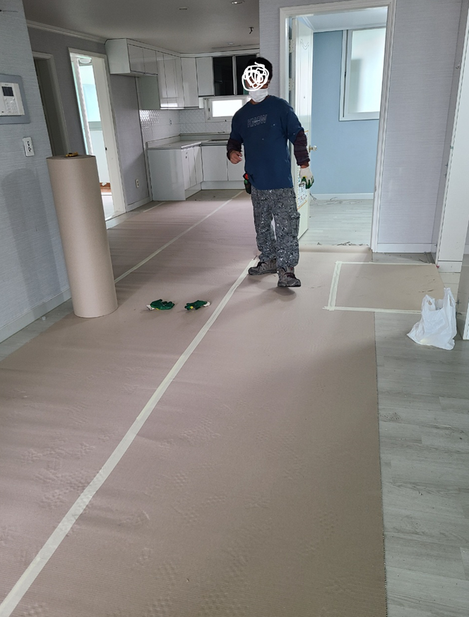 우선 이번 집은 바닥 공사를 안 하신다고 하셔서 바닥 보양 작업을 진행하였습니다.