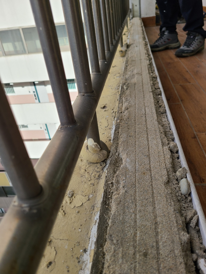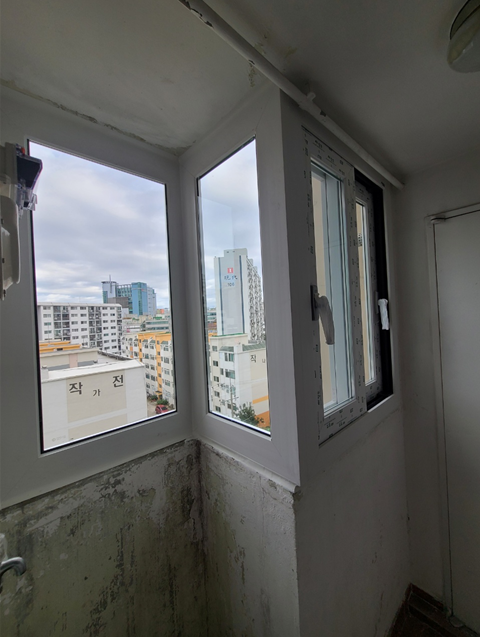 우선 발코니창을 철거하며 하부는 아래와 같이 생겼습니다.
