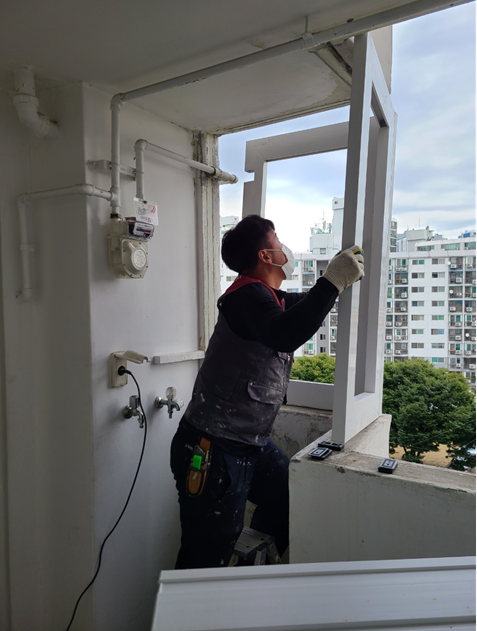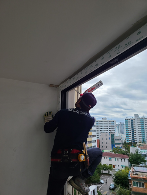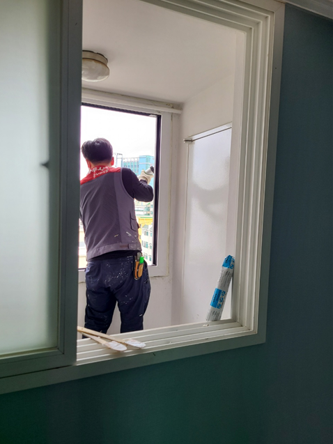 이런 식으로 모든 창에 고정, 우레탄폼, 외부 실리콘 작업을 마무리하며 내부 실리콘 작업에 들어갑니다.