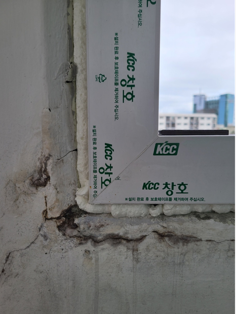 이 틈은 단열재 즉 우레탄 폼이 들어갈 자리입니다. 만약 창호가 벽가 맞닿아 있으면 외부의 한기가 바로 창호에 전달이 돼서 춥게 되죠. 즉 단열성이 떨어지죠. 그런데 예전에는 그런 거 상관 안 하고 벽에 딱 맞게 할 때도 있었습니다. 알루미늄 창들이 대부분 그렇게 시공이 되어있죠. 그래서 혹시 새로 입주하시는 아파트가 알루미늄 창이다. 하시면 창호는 교체가 정답입니다.ㅎㅎ