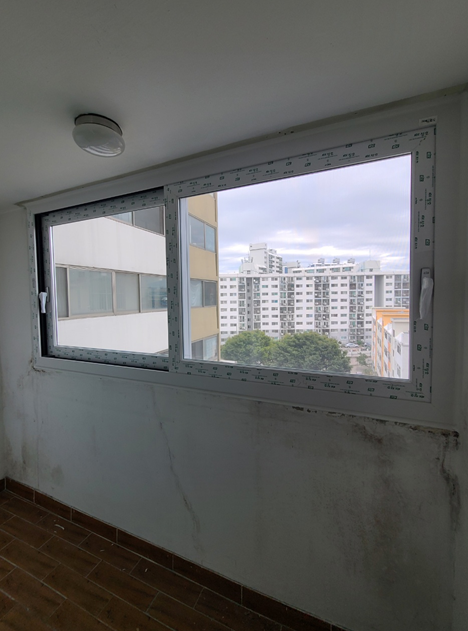 네.. 이렇게 작업이 다 끝났습니다. 발코니 쪽에 결로로 물때가 낀 부분들은 탄성코트 작업을 해서 깔끔하게 처리할 겁니다.