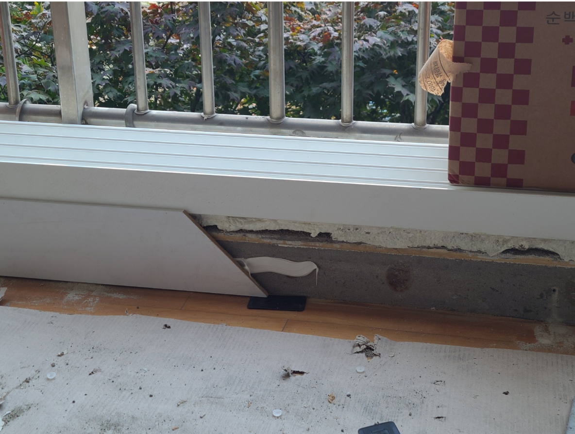 위에 사진처럼 하부에는 기존 있었던 몰딩을 띠어 내고 저렇게 색을 맞추어서 재 작업으로 마무리합니다. 하부뿐만 아니라 4면을 저렇게 몰딩 마감재로 마감을 하죠.