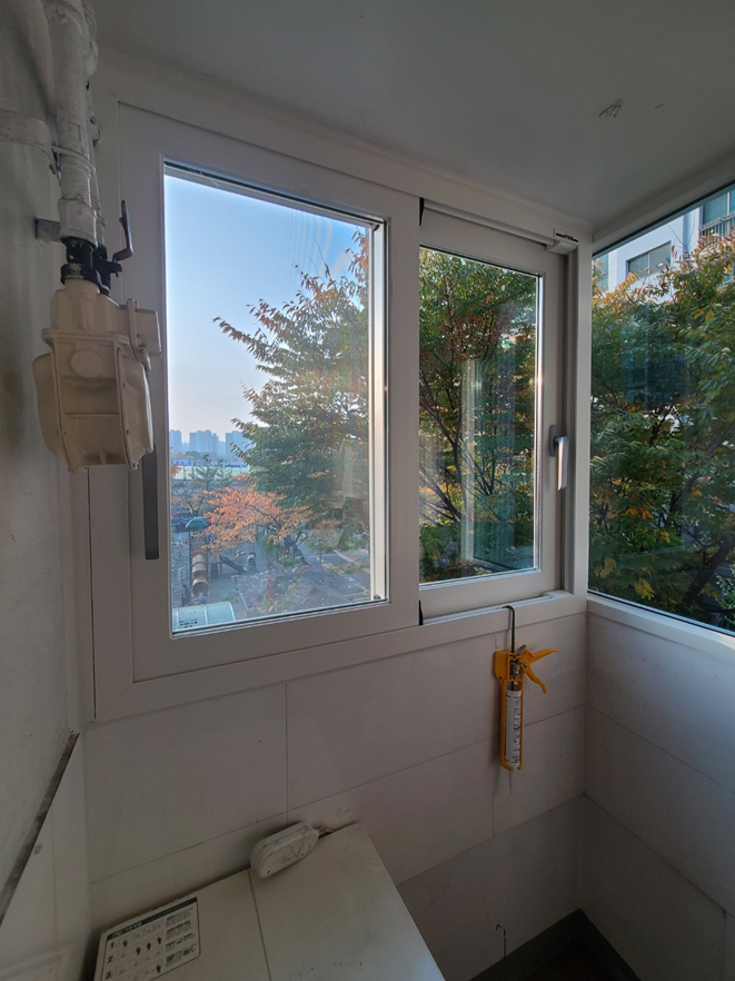 여길 만약에 새로 입주하면서 했다면 고정창을 했을 자리인데 여건상 통바 작업으로 했습니다. 사실 이게 더 낫습니다.