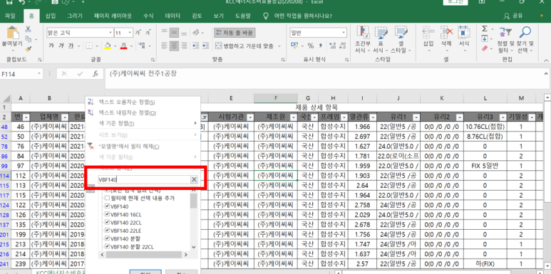 1. 우선 모델명에 VBF-140을 아래와 같이 필터를 거릅니다.