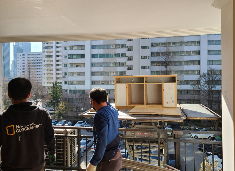 고객님이 이제 안 쓰는 짐들도 버려 달라고 하셔서 그거까지 싹 다 내립니다.