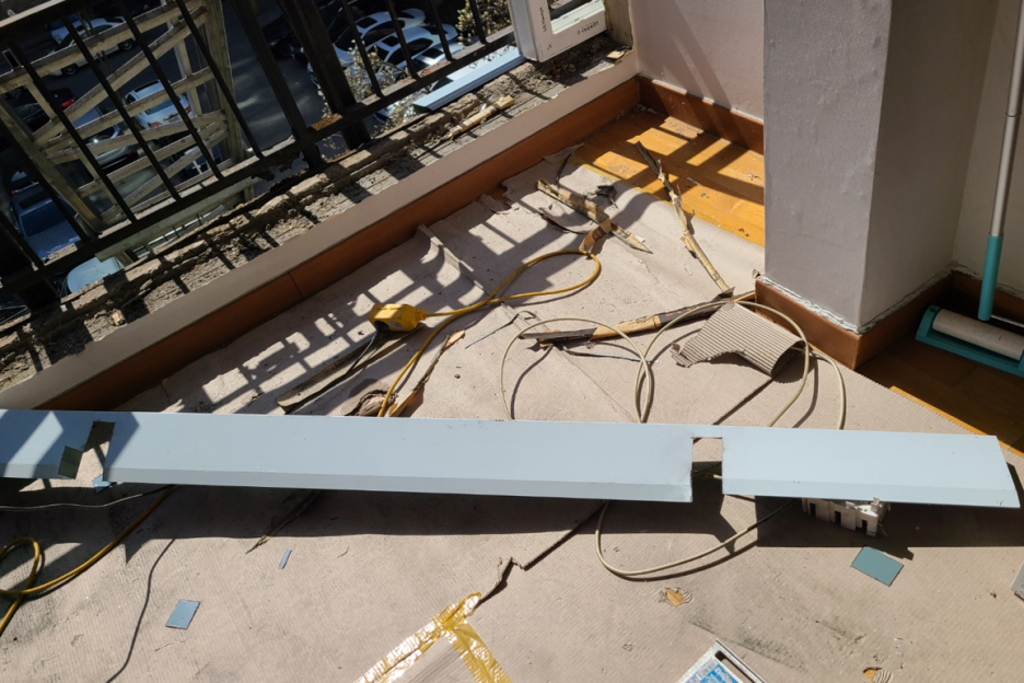 그리고 발코니 창 하부에 갈바 작업을 하기 위해 작업을 하고 계시네요.... 제가 저번에 갈바 작업을 왜 하는지는 알려 드렸었는데요.... 아래 블로그 글 참조 하시면 될 거 같습니다.
